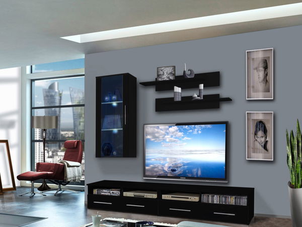 Jednoduchý a moderný dizajn obývacej steny je doplnený o systém push-click, ktorý je využitý pri vitríne. Obývacia stena je doplnená o LED podsvietenie.