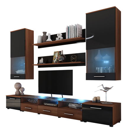 Elegancia do obývacej izby patrí a obývacia stena Clover II osvetlením v cene sa vám o eleganciu postará. 2 osvetlené vitríny sú umiestnené po oboch stranách obývacej steny a dodávajú odtieňu slivka v kombinácií s čiernym leskom švieži nádych.