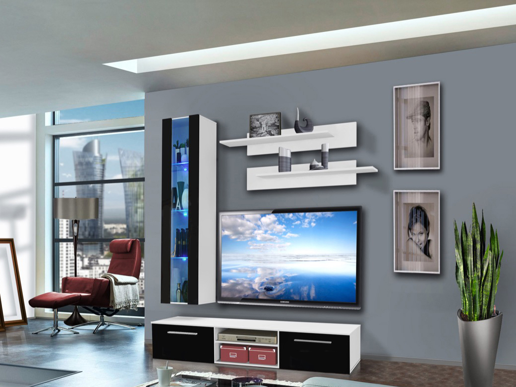 Jednoduchý a moderný dizajn obývacej steny je doplnený o systém push-click, ktorý je využitý pri vitríne. Obývacia stena je doplnená o LED podsvietenie.