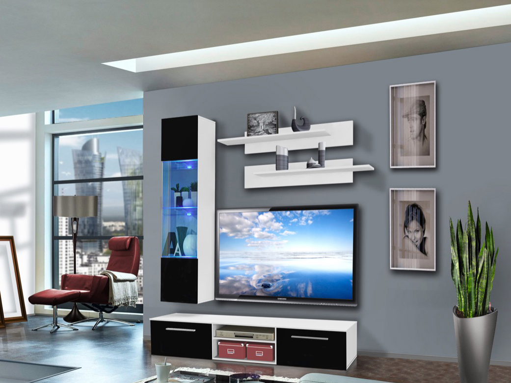 Jednoduchý a moderný dizajn obývacej steny je doplnený o systém push-click, ktorý je využitý pri vitríne. Obývacia stena je doplnená o LED podsvietenie.