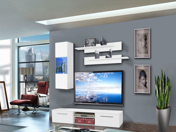 Jednoduchý a moderný dizajn obývacej steny je doplnený o systém push-click, ktorý je využitý pri vitríne. Obývacia stena je doplnená o LED podsvietenie.