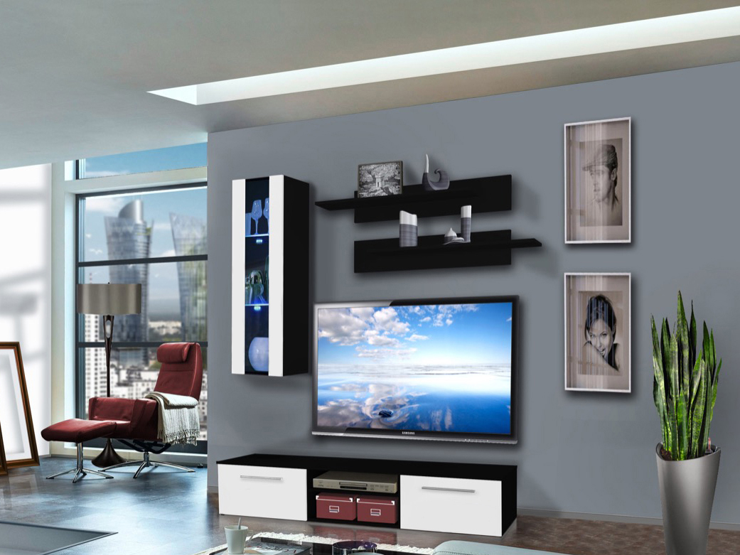 Jednoduchý a moderný dizajn obývacej steny je doplnený o systém push-click, ktorý je využitý pri vitríne. Obývacia stena je doplnená o LED podsvietenie.