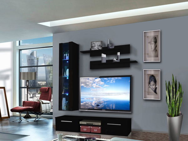Jednoduchý a moderný dizajn obývacej steny je doplnený o systém push-click, ktorý je využitý pri vitríne. Obývacia stena je doplnená o LED podsvietenie.