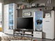 Zariaďte si obývaciu izbu touto modernou obývacou stenou, ktorá sa vyznačuje dômyselným riešením úložného priestoru, jednoduchým, no funkčným dizajnom a príjemným farebným prevedením, ktoré pekne presvetlí Vašu obývaciu izbu. Obývacia stena sa skladá z dvoch vitrín, širokej poličky a TV stolíka s priestorom pre audio/video zariadenia. Presklené poličky vo vitrínach sú podsvietené bielym LED osvetlením.