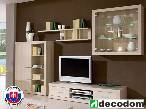 Obývací program Nico si pre svoj čistý vzhľad a elegantné spracovanie drevodekorom získal veľkú obľubu u zákazníkov. Typickou črtou obývacej izby je mohutný rám lemujúci predné plochy. Korpus je vyrobený z LDTD, predné plochy z MDF vo farbe dreva Jaseň Coimbra. Vo vitríne je číre bezpečnostné sklo bez rámov. Boky sú ukončené ABS hranou, ktorá zvyšuje odolnosť voči mechanickému poškodeniu, udržuje farebnú stálosť a odolnosť proti vlhkosti. Celkový pekný a moderný dizajn dotvárajú kovové úchyty.V prípade, že si chcete rozšíriť zostavu obývacej steny, môžete si priobjednať praktickú trojdielnu komodu Nico.