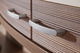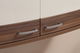 Pekne do oblúka! Ronco má zaoblené bočné lišty aj oblúkové dvere, čo sa budú u vás doma vynímať. Povrch je kombináciou hladkej a frézovanej dosky, s frézovanými slivkovými lištami. Korpus je vo farbe Slivky z materálu LDTD a svetlé fronty sú vo vysokom lesku vanilkovom z MDF dosky. Vo vitríne sa nachádza číre bezpečnostné sklo. Zásuvka je s praktickou funkciou samodoťahu a brzdou.