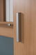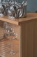 Korpus aj predné plochy sú vyrobené z laminovanej drevotrieskovej dosky LDTD hrúbky 16 mm v odtieni dreva Buk. Vo vitríne sa nachádza číre bezpečnostné sklo. Úchytky sú plastové s roztečou 128 mm.