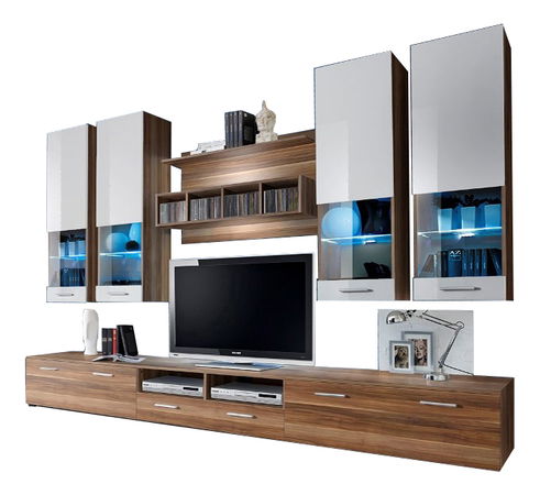 Obývacia stena Delila 20 NW DO (s osvetlením) (slivka + lesk biely)