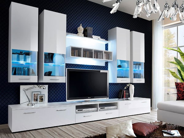 Obývacia stena Delila 20 WW DO (s osvetlením) (biela + lesk biely)