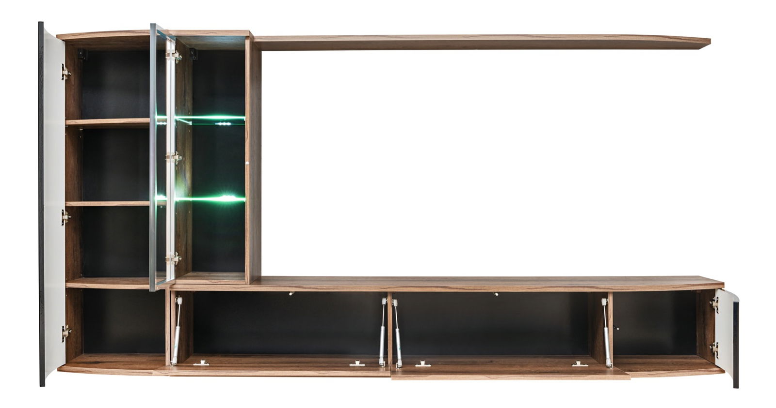 Závesný displej: 45/126/40 Presklená vitrína: 30/90/40 cm, RTV: 210/30/40 cm, Polica: 180/2/25 cm