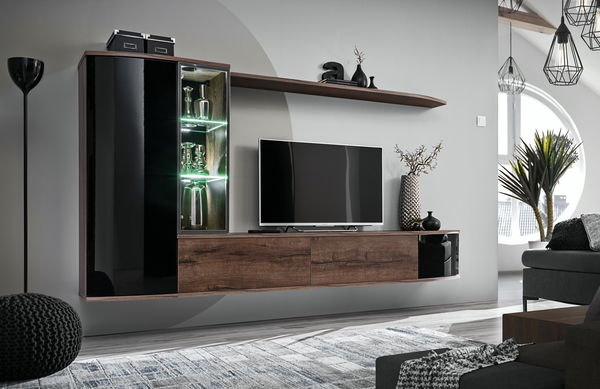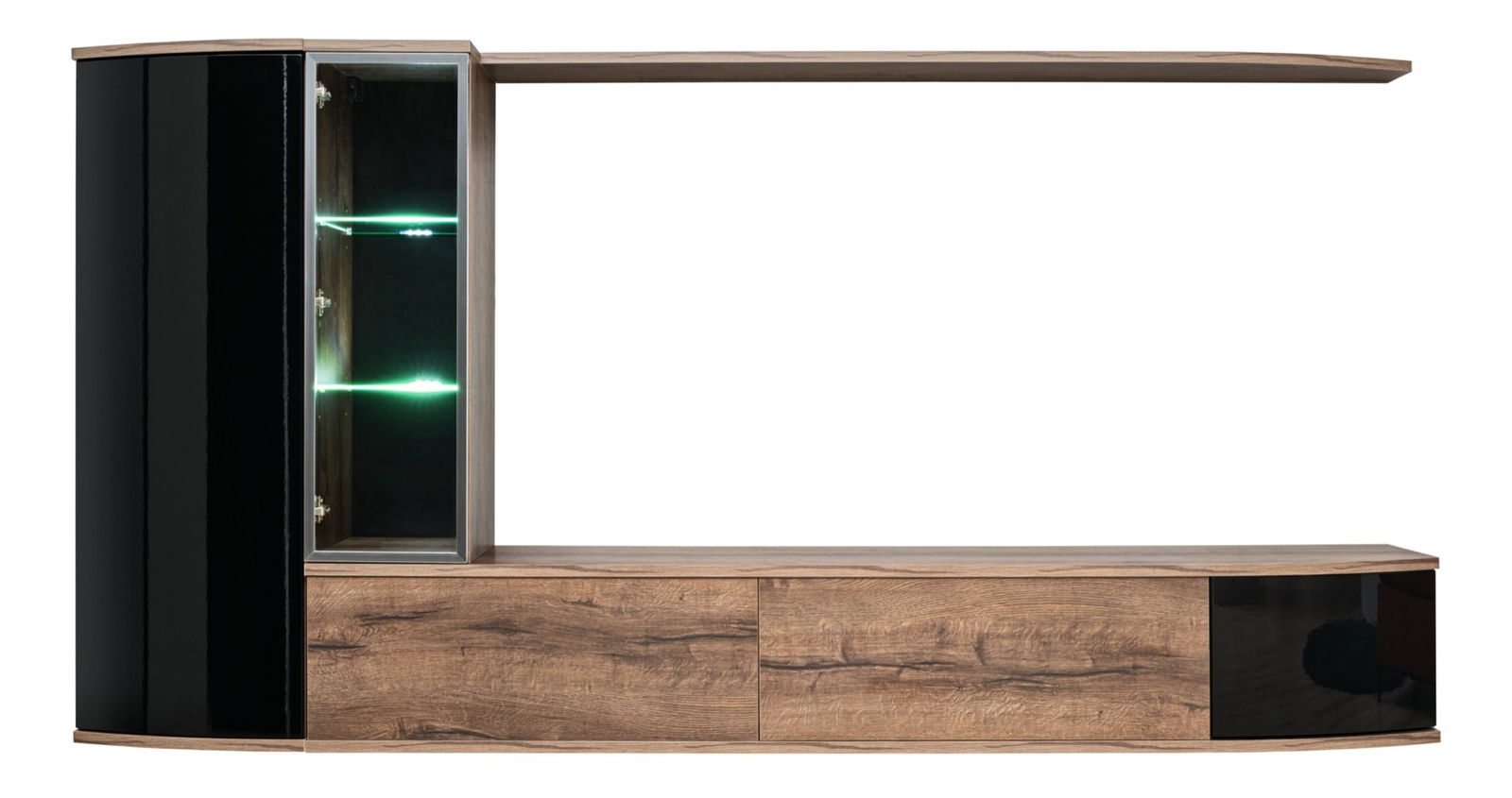 ZobraziťObývacia stena Derek 20 DMS DK (dub monastyr + čierna) s výškou 130 cm a hĺbkou 40 cm je luxusným kúskom nábytku, ktorý vás okúzli svojím nadčasovým dizajnom. Táto obývacia stena kombinuje lesklú čiernu farbu s dubom monastyr a pôsobí mimoriadne príťažlivo. Môže byť umiestnená voľne v priestore a to znamená, že bude vaša obývačka pôsobiť priestrannejšie. Okrem toho, bude vám umožnený bezproblémový prístup k podlahe počas domácich prác alebo pod stenu ju môžete jednoducho umiestniť koberec. Táto obývacia stena obsahuje TV stolík, poličku a zatvárateľnú skriňu s priečinkami na ukladanie vecí. Vitrína je zaujímavo osvetlená a poskytuje dostatok úložného priestoru. Rozmery balíkov sú: Balík č. 1 - 107x36x11 cm / 14 kg, Balík č. 2 - 221x44x7 cm / 38 kg, Balík č. 3 - 150x52x13 cm / 30 kg a Balík č. 4 - 117x44x9 cm / 20 kg.