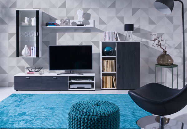 V obývacej izbe trávime veľa času, a preto sa ju snažíme, čo najútulnejšie zariadiť. Obývacia stena je dobrým riešením, ako vniesť do obývacej izby štýl a praktické riešenie úložného priestoru. Táto obývacia stena sa skladá zo štyroch segmentov - z TV stolíka s dvomi dvierkami a dvomi otvorenými poličkami pre audio/video zariadenia, z elegantnej vitríny, v ktorej vyniknú Vaše dekorácie, šikovnej poličky, kam si môžete poukladať obľúbené fotografie a doplnky a nízkeho regálu, ktorý môžete veľmi jednoducho pretvoriť na knižnicu.