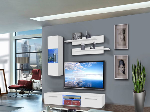 Jednoduchý a moderný dizajn obývacej steny je doplnený o systém push-click, ktorý je využitý pri vitríne. Obývacia stena je doplnená o LED podsvietenie.