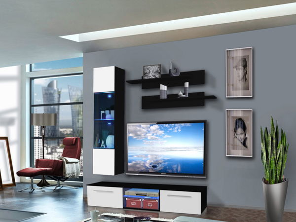 Jednoduchý a moderný dizajn obývacej steny je doplnený o systém push-click, ktorý je využitý pri vitríne. Obývacia stena je doplnená o LED podsvietenie.