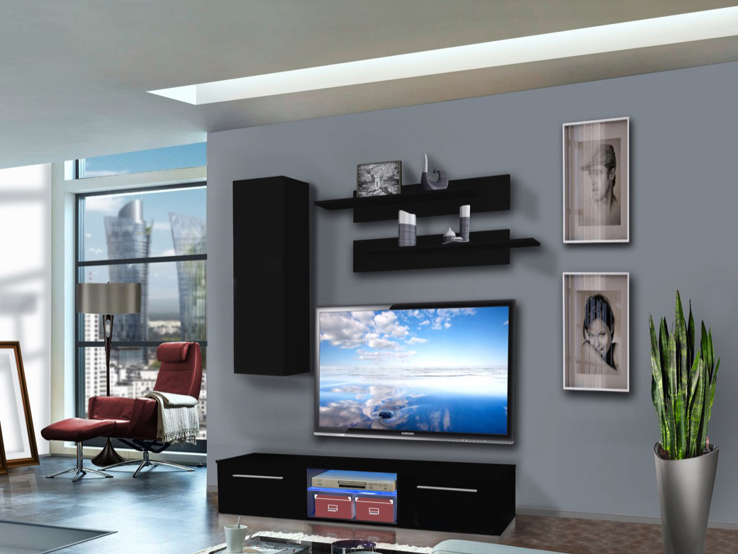Jednoduchý a moderný dizajn obývacej steny je doplnený o systém push-click, ktorý je využitý pri skrine na stenu.