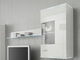Moderná obývacia stena Essen je vyrobená z tých najkvalitnejších materiálov. Všetky komponenty tohto nábytku sú vyrobené v Nemecku. Korpus je matnej bielej farby, pričom dvierka sú vo vysokom lesku. Presklené časti vitrín sú z číreho skla a je možné si priobjednať efektné RGB osvetlenie, pri ktorom máte možnosť vybrať si až z deviatich rôznych farieb podsvietenia. Vďaka tomu si môžete podľa nálady meniť atmosféru miestnosti. Ak by Vám nestačil ponúkaný úložný priestor, je možné si priobjednať vitrínu Essen.