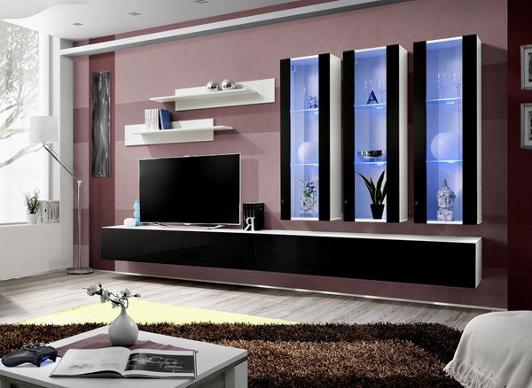 Obývacia stena Ferryhill 23 WS FY E3 (s osvetlením) (biela + lesk čierny)