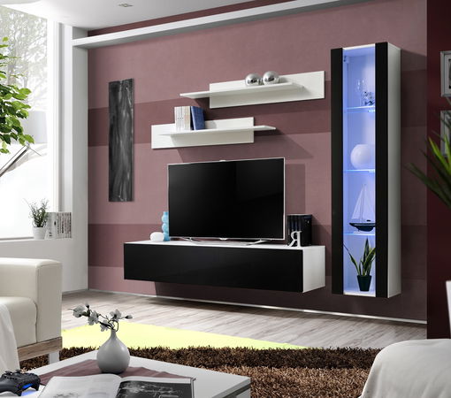 Obývacia stena Ferryhill 23 WS FY G2 (s osvetlením) (biela + lesk čierny)