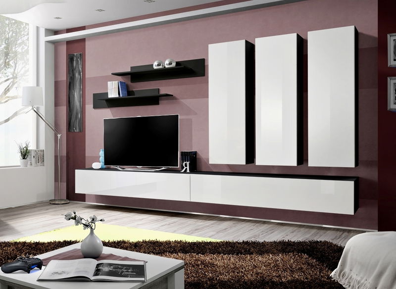 Obývacia stena Ferryhill 23 ZW FY E1 (čierna + lesk biely)