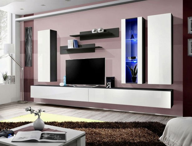Obývacia stena Ferryhill 23 ZW FY E4 (s osvetlením) (čierna + lesk biely)