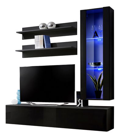 Obývacia stena Ferryhill 23 ZZ FY H2 (s osvetlením) (čierna + lesk čierny)