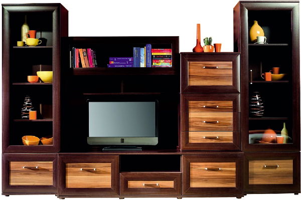 Príjemný dominantný tmavý sektor, ktorý je vhodný do svetlých miestností, kde bude určovať štýl. Farebná kombinácia tmavého venge použitého na korpuse a obvodoch je dobre zladená s odtieňom slivky, na ktorej sa nachádza výrazná kresba dreva. Polica a konferenčné stolíky sú vyrobené v odtieni venge bez použitia doplnkového odtieňu slivky. Do pozornosti dávame elegantnú vešiakovú stenu, ktorá je predurčená na použitie v predsieňach, kde sa využite jej vešiakový panel umiestnený v ľavej časti nad botníkom (skrinkou na topánky).