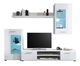 Táto nádherná obývacia stena HENRI NEW je vyrobená z kvalitnej laminovanej drevotriesky a predné plochy sú zas z moderného materiálu MDF frézovaná vo farebnom prevedení biela s bielym extra vysokým leskom high gloss skombinovanej s čírim sklom vitrín. Obývacia stena pozostáva z dvoch priestranných skriniek so sklenými vitrínami, RTV stolíka s dvomi dvierkami a police. Oživte obývaciu stenu LED osvetlením s bielym podfarbením.