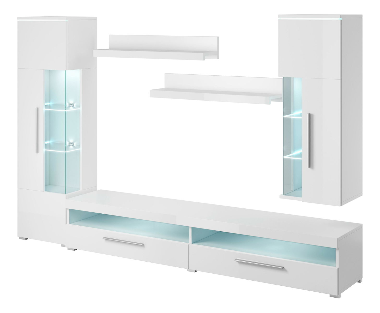 Obývacia stena Indiko Typ 10 (biela + lesk biely) (s osvetlením)