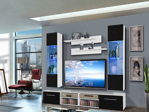 Jednoduchý a moderný dizajn obývacej steny je doplnený o systém push-click, ktorý je využitý pri vitríne. Obývacia stena je doplnená o LED podsvietenie.
