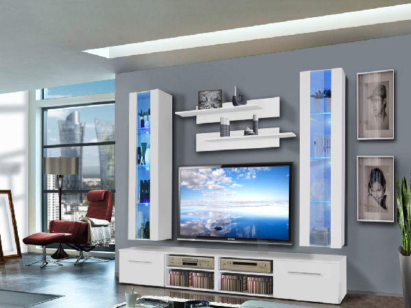 Jednoduchý a moderný dizajn obývacej steny je doplnený o systém push-click, ktorý je využitý pri vitríne. Obývacia stena je doplnená o LED podsvietenie.