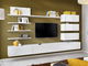 Moderná obývacia stena s jednoduchými líniami a veľkou praktickou stránkou. Zostava obsahuje skrinky s výklopnými dvierkami a poličky. Kedže nie sú na seba viazané, možete si ich umiestniť buď podľa vzoru na obrázku, alebo zapojiť fantáziu a zariadiť si obývaciu izbu podľa vlastných predstáv a potrieb. Všetky dvierka sa otvárajú dômyselným PUSH-CLICK systémom, kedy stačí jemne zatlačiť pre otvorenie alebo opätovné zatvorenie dvierok. Fronty majú vysoký PCV lesk.