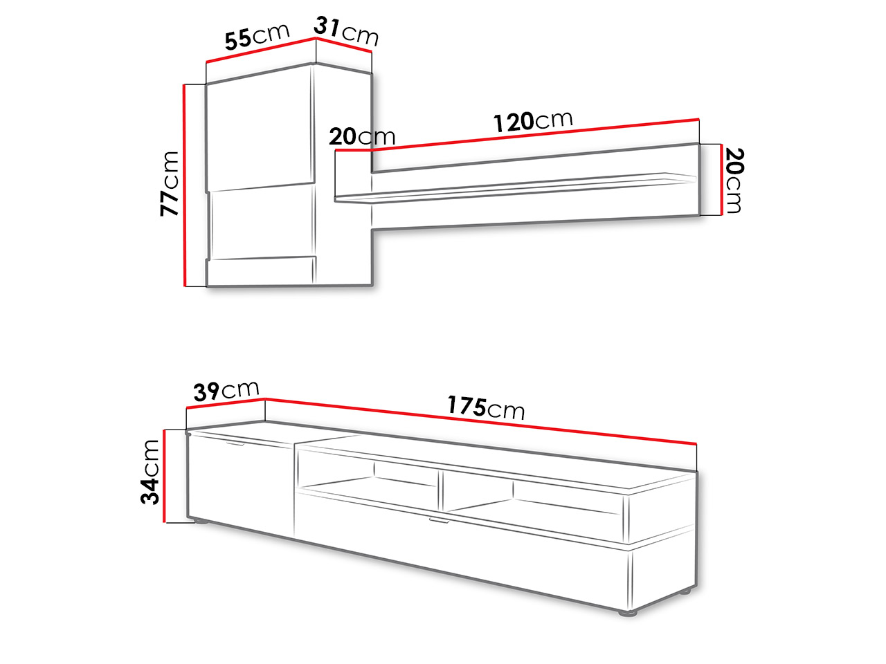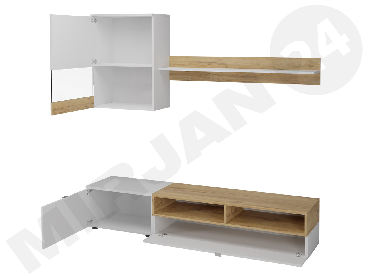 Moderné interiéry vyžadujú výnimočné vybavenie, ako napr. obývaciu stenu James. Jednoduchosť a elegancia nábytku zdôrazňujú čerstvé farby - kombinácia bielej s geometrickými vzormi vo farbách napodobňujúcich drevo vytvára jedinečný efekt.