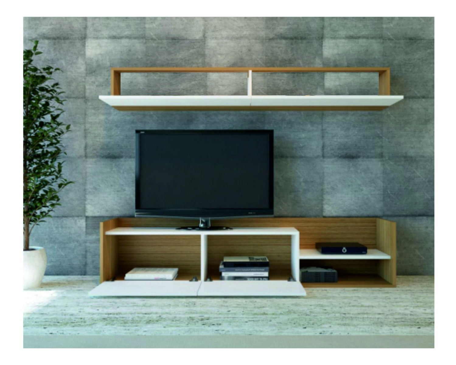 - Obývacia stena Kalen (biela + teak)