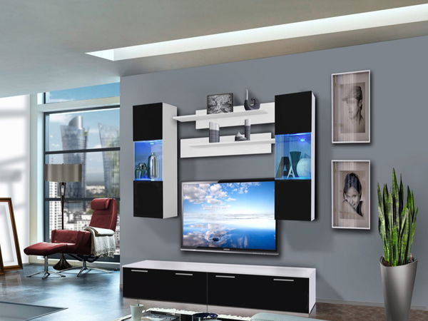 Jednoduchý a moderný dizajn obývacej steny je doplnený o systém push-click, ktorý je využitý pri vitríne. Obývacia stena je doplnená o LED podsvietenie.