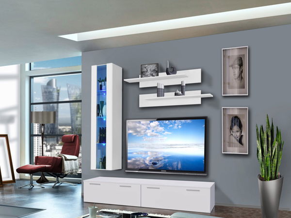 Jednoduchý a moderný dizajn obývacej steny je doplnený o systém push-click, ktorý je využitý pri vitríne. Obývacia stena je doplnená o LED podsvietenie.