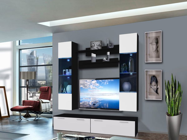 Jednoduchý a moderný dizajn obývacej steny je doplnený o systém push-click, ktorý je využitý pri vitríne. Obývacia stena je doplnená o LED podsvietenie.