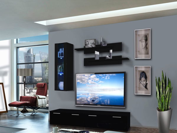 Jednoduchý a moderný dizajn obývacej steny je doplnený o systém push-click, ktorý je využitý pri vitríne. Obývacia stena je doplnená o LED podsvietenie.