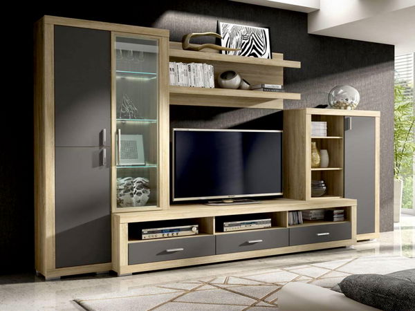 Obývacia stena Luna P6DULN (sonoma + šedá) (s osvetlením)