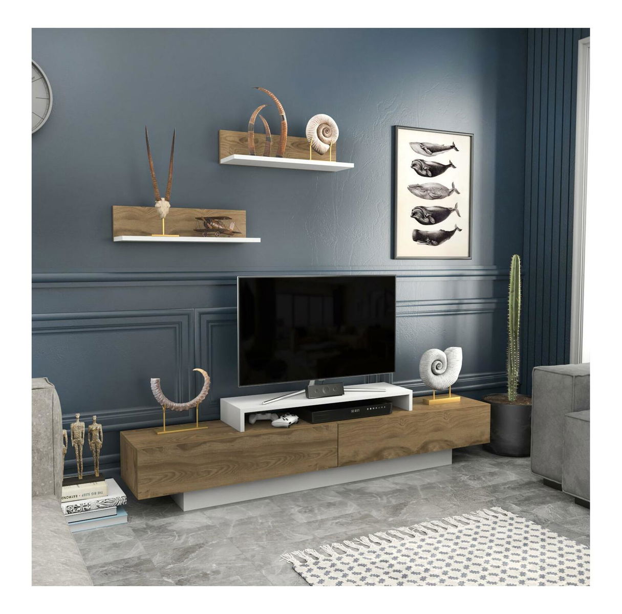 Obývacia stena Lusalona (biela + dub)