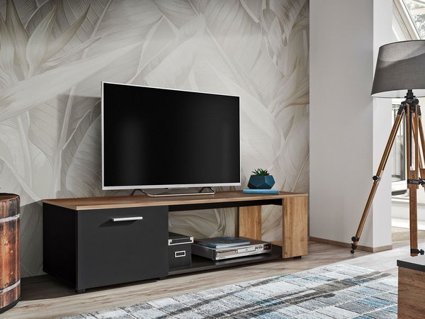 Obývacia stena Mantes ZWT30 (čierna matná + dub wotan)