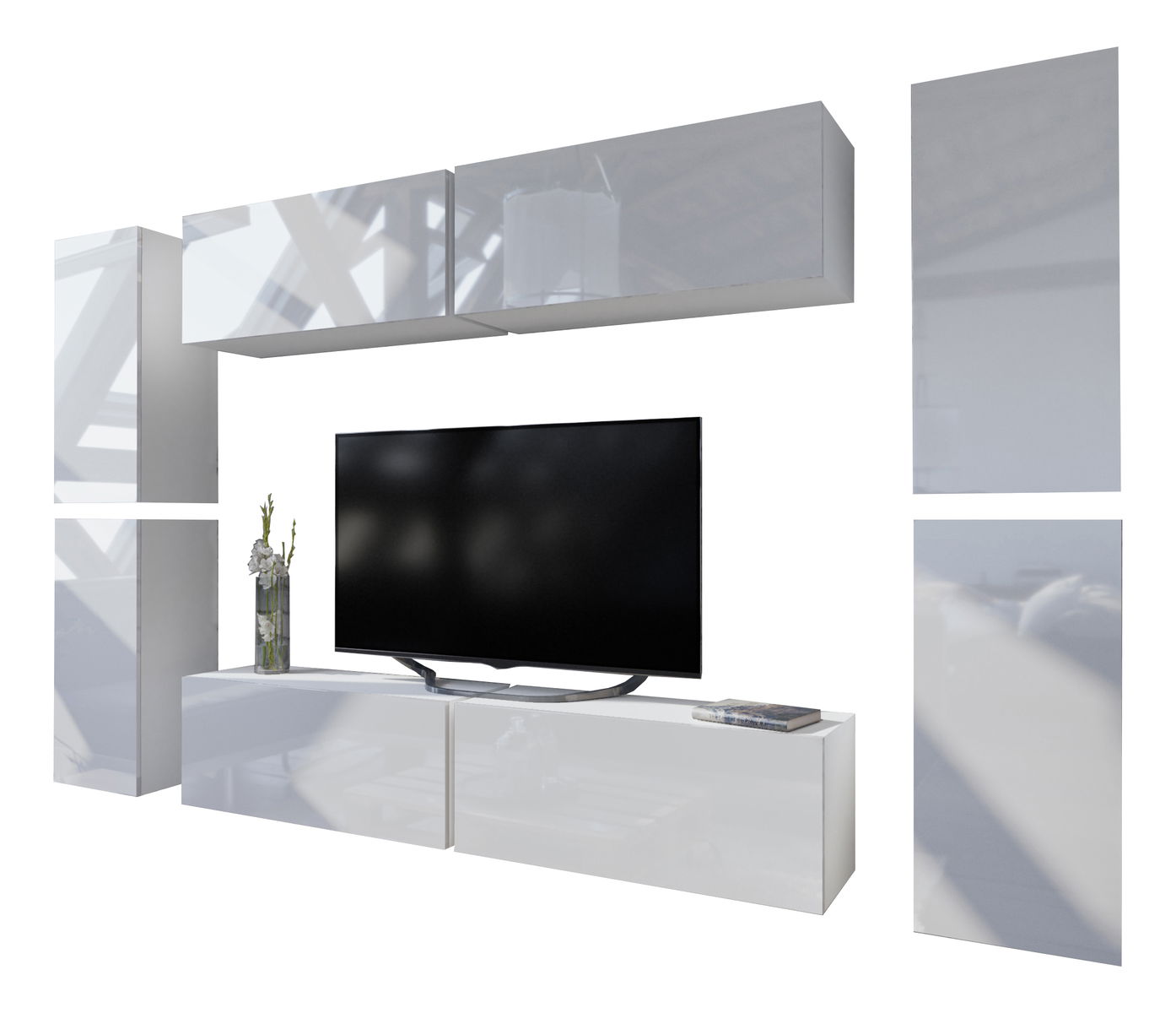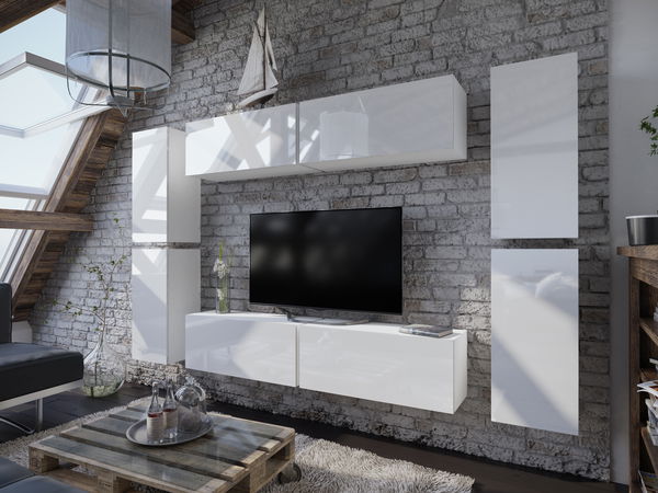Obývacia stena Melville (biela + biely lesk)