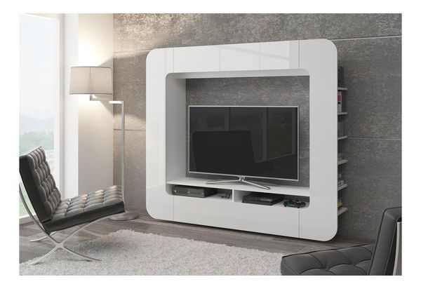 Rozkladací jedálenský stôl Granger (lesk biely + betón) (pre 2-6 osôb)