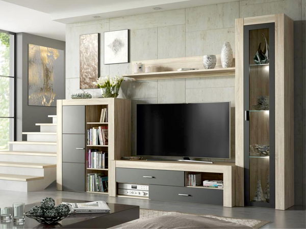 Obývacia stena Niza P6DSN2 (sonoma + šedá) (s osvetlením)