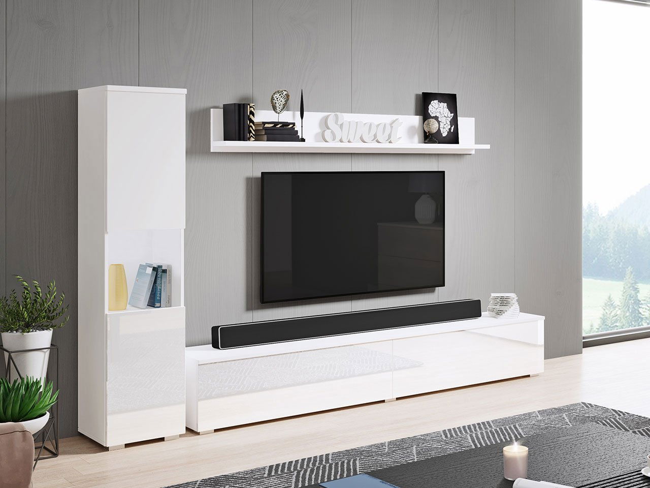 Obývacia stena Nova BR (biela + lesk biely) (bez osvetlenia)