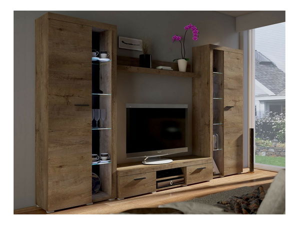 ZobraziťExtrémne funkčná súprava nábytku pozostáva predovšetkým z vysokej skrinky. Vďaka systému delených políc získate praktický úložný priestor. Záverečná časť je priestranná polica na doplnky, zatiaľ čo vitrína je zdobená sklenenými policami na dekorácie a rodinnými suvenírmi. V ďalšej možnosti si môžete kúpiť LED osvetlenie, ktoré dodá vášmu interiéru atmosférickú žiaru. Televízna skrinka zabudovaná do nástennej jednotky do obývacej izby je kombináciou prelamovaných políc (pre dekodér a reproduktor) s otočnými policami na príslušenstvo. Stenovú jednotku dopĺňa stabilná polica, ktorú môžete zavesiť na televízor. Jeho dĺžka je prispôsobená televíznemu stolu. Vďaka módnym farebným kombináciám nástenných jednotiek bude možné úspešne zapadnúť do škandinávskych, priemyselných a minimalistických interiérov.