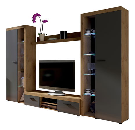 Obývacia stena Rudby XL (dub lefkas + grafit) (bez osvetlenia)