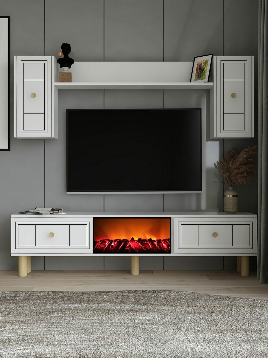 - Obývacia stena s krbom Darino (biela)