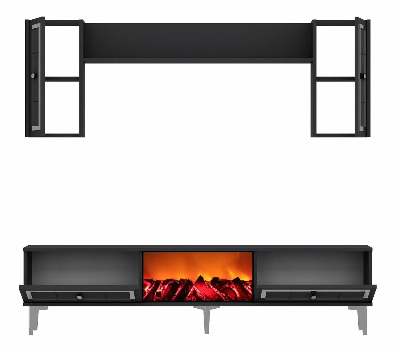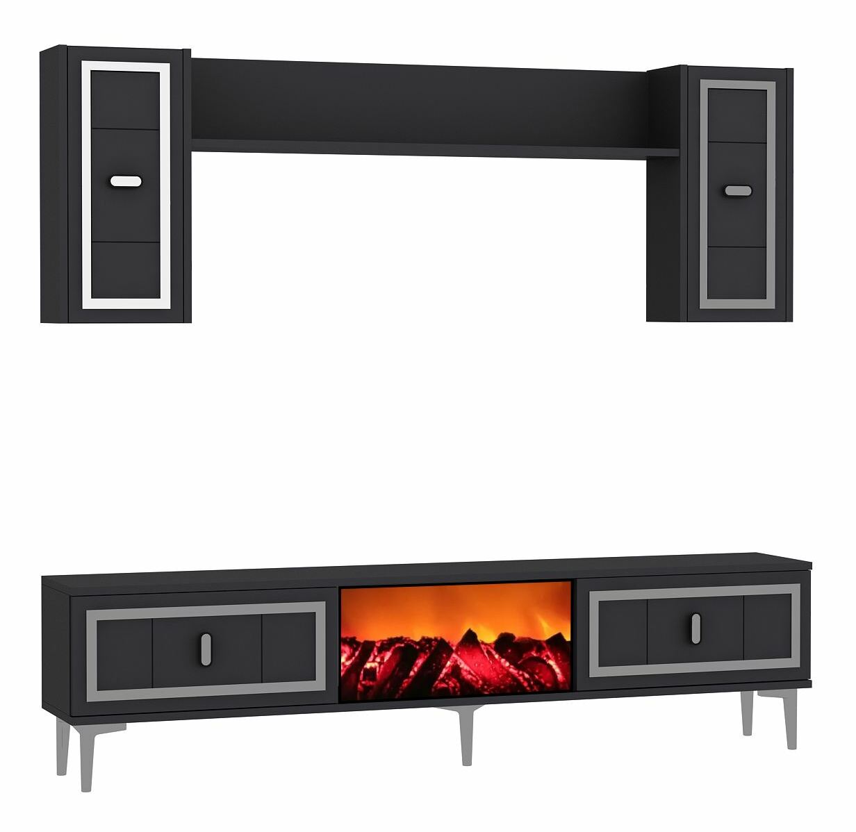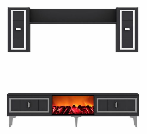 Obývacia stena s krbom Orino (antracit + strieborná)