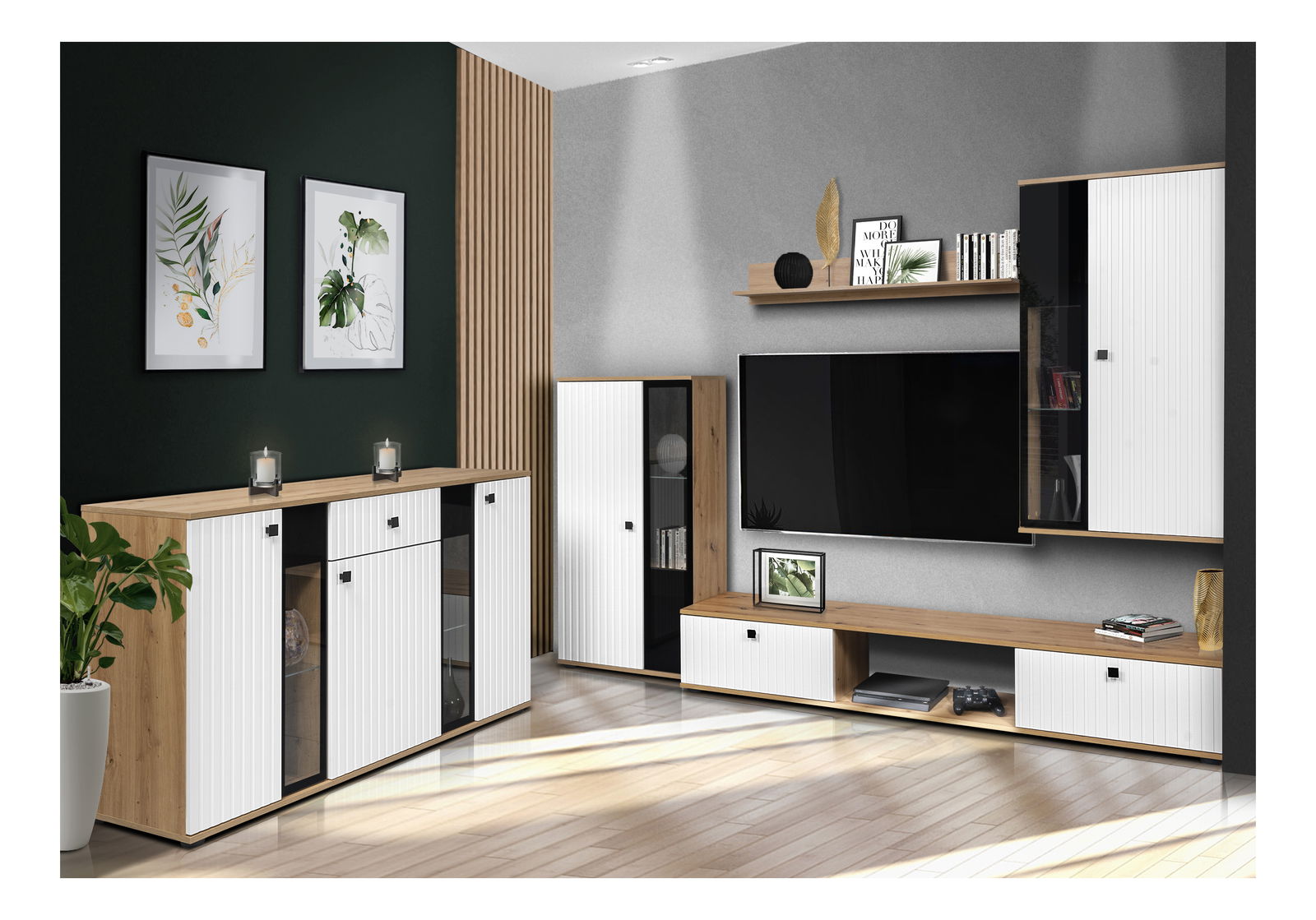 Obývacia stena Saul (biela + dub artisan) (bez osvetlenia)