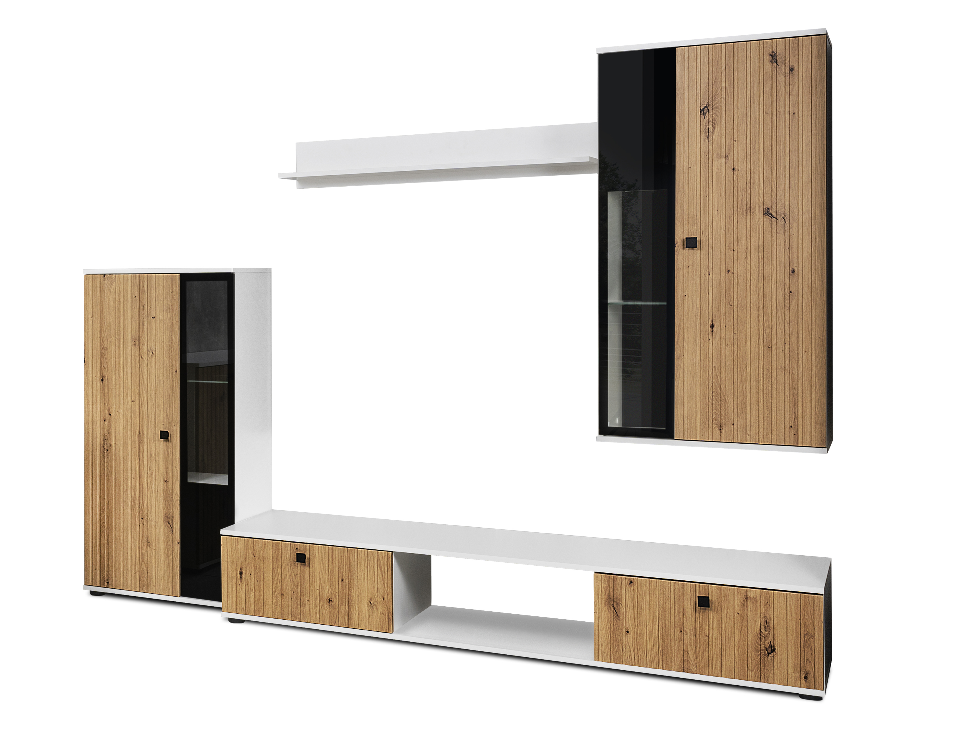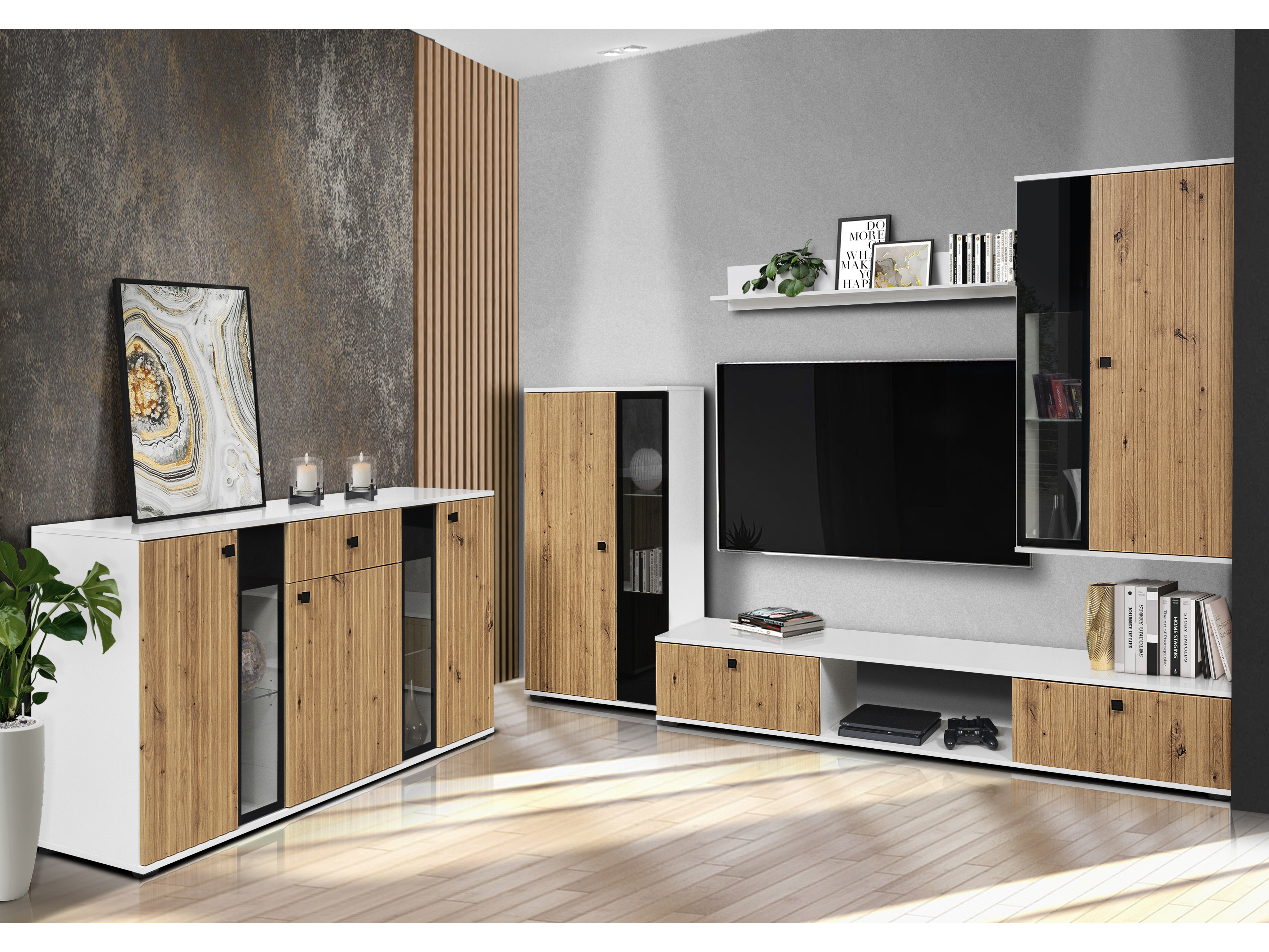 Obývacia stena Saul (dub artisan + biela) (bez osvetlenia)